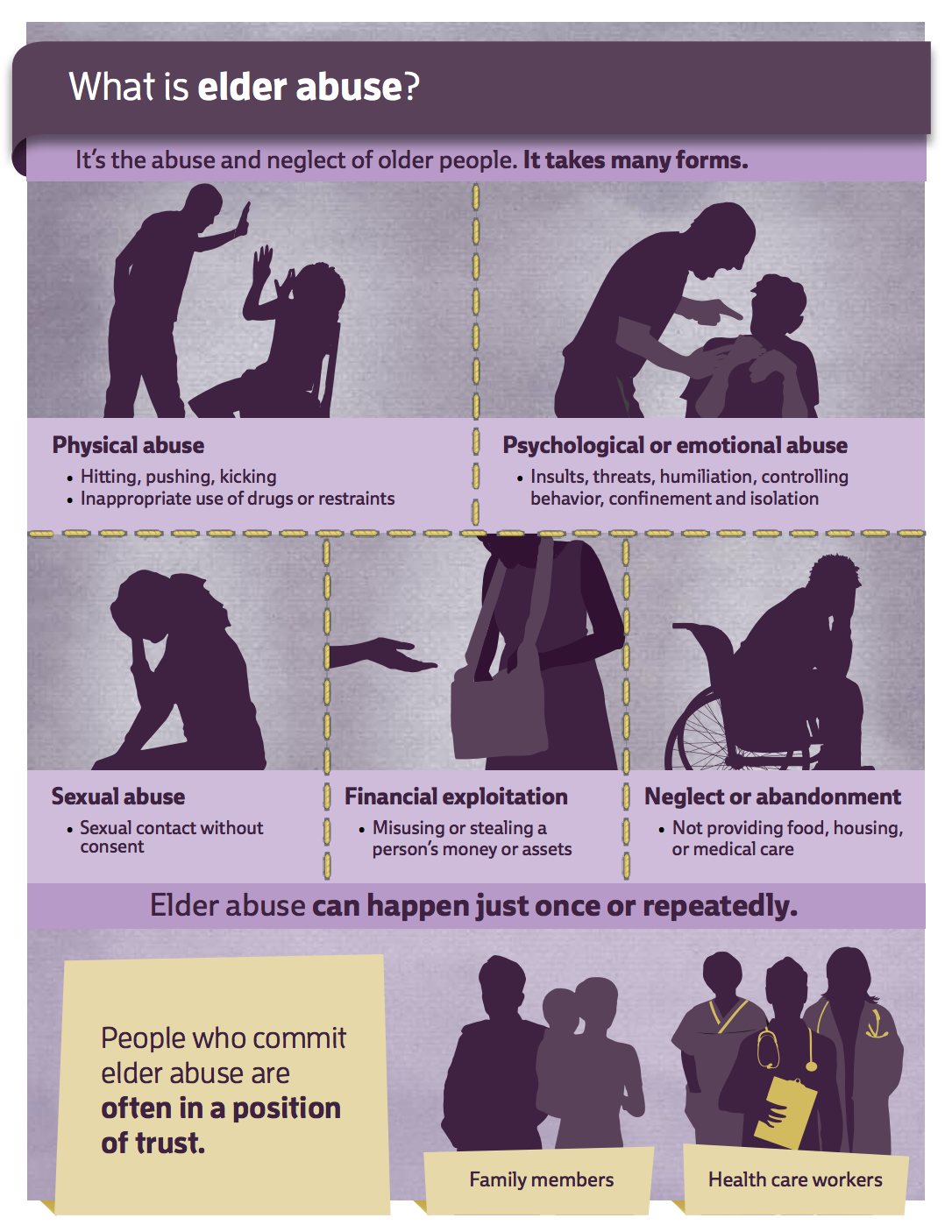 Si distinguono 4 tipi di abusi sugli anziani: