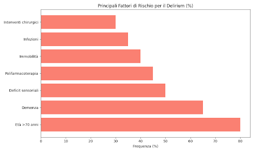 Il delirium è il risultato di una combinazione di fattori tra cui fattori predisponenti come l’età avanzata, la compresenza di patologie psichiatriche come demenza, problemi visivi o uditivi e fattori scatenanti che includono febbre, infezioni, interventi chirurgici, immobilizzazione, utilizzo di farmaci.
